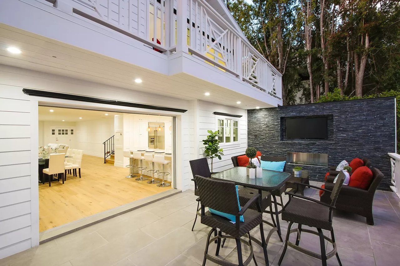 A rare new construction pool home with a guesthouse you have been waiting for in a prime location. A gracious gated entry with a circular driveway leads to this gorgeous Cape Cod. Upon entry, you will be greeted with spacious open floor living areas that open out to a large outdoor entertaining lounge and dining terrace with a fireplace overlooking a sparkling pool and a lush private backyard with views of the Hollywood Hills. The home features beautiful woodwork on walls, expansive windows, a large gourmet kitchen complete with all chrome-brushed appliances, a large island perfect for casual gatherings, 3 well-appointed guestrooms and a master suite boasting cathedral ceilings, a walk-in closet, spa-like bathrooms in Calcatta, and Carrara Marble and a private master terrace overlooking the pool and the lush Hollywood Hills.
